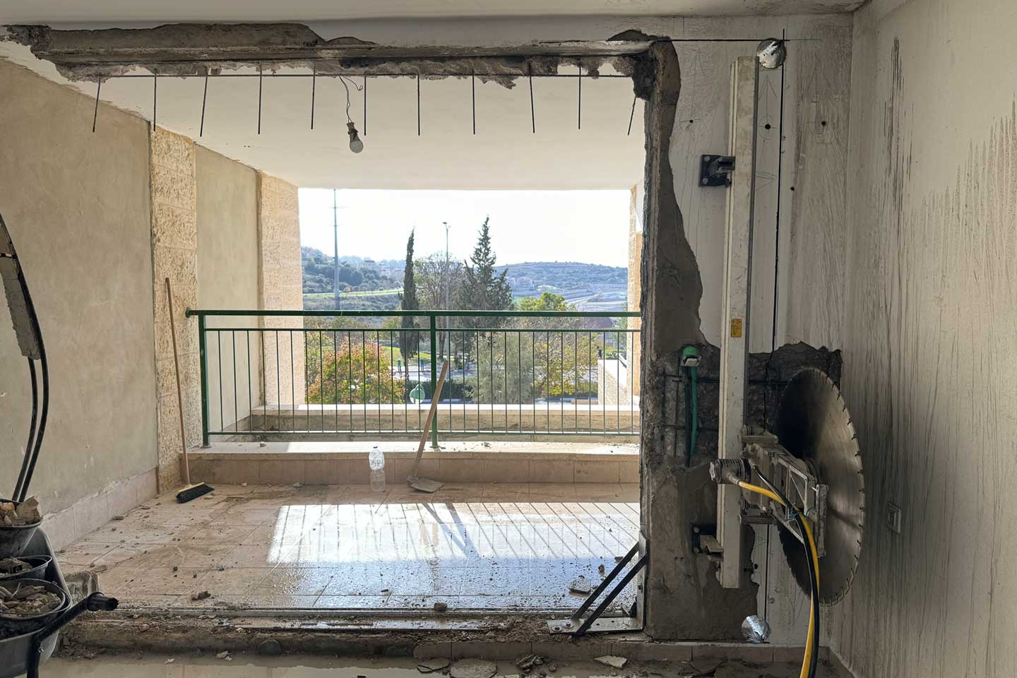 - ניסור בטון בבנייני מגורים: פתיחת חלונות ומעברים, שדרוג תשתיות פנימיות.